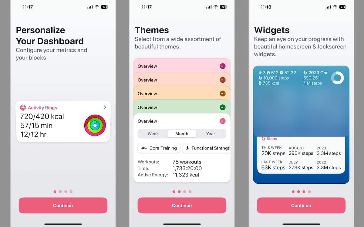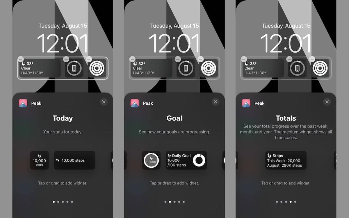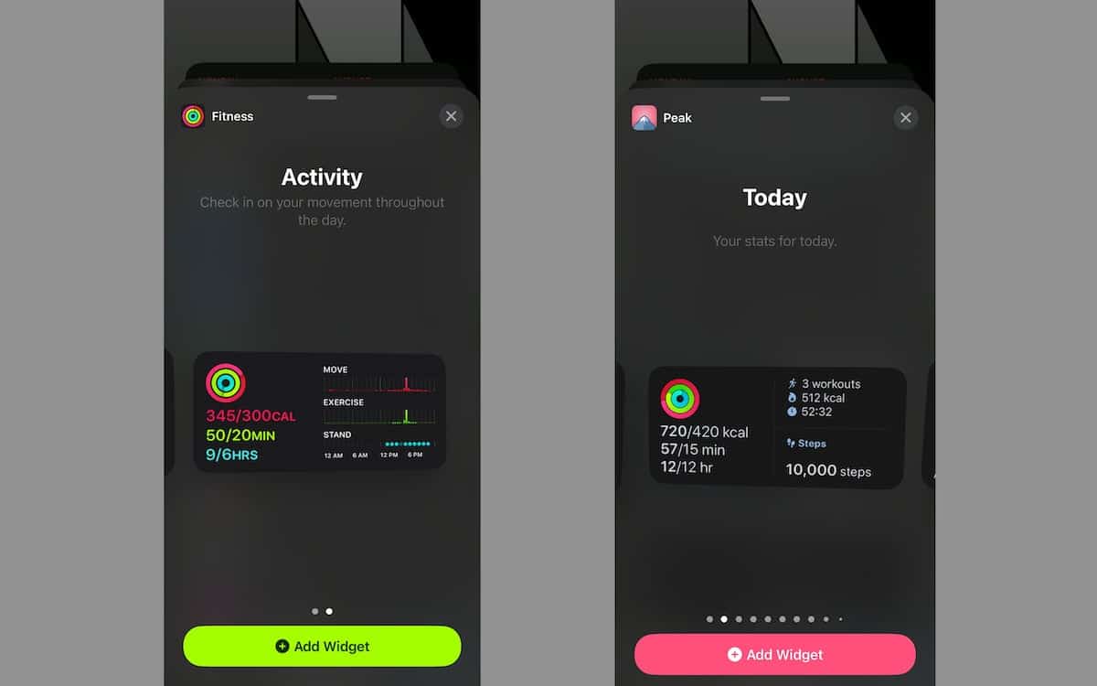 Peak: Fitness Widgets A Fitness Tracker alkalmazás személyre szabást és nagyszerű felhasználói felületet kínál az Apple Fitness App -tól eltérően