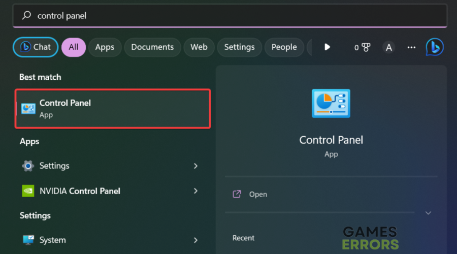 1. Nyomja meg a Windows gombot, írja beVezérlőpult, majd nyissa meg az első eredményt.