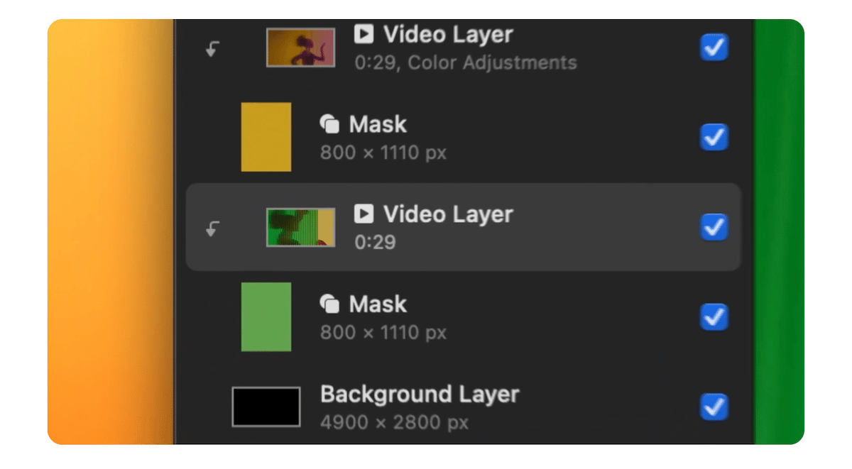 - Videó rétegektartalmazza az összes képszerkesztő eszközt a videók szerkesztéséhez. „A videórétegek ugyanúgy működnek, mint a normál képrétegek, így hihetetlenül gyors és egyszerű a videók maszkolása vagy kivágása, effektusok hozzáadása, színek módosítása stb.