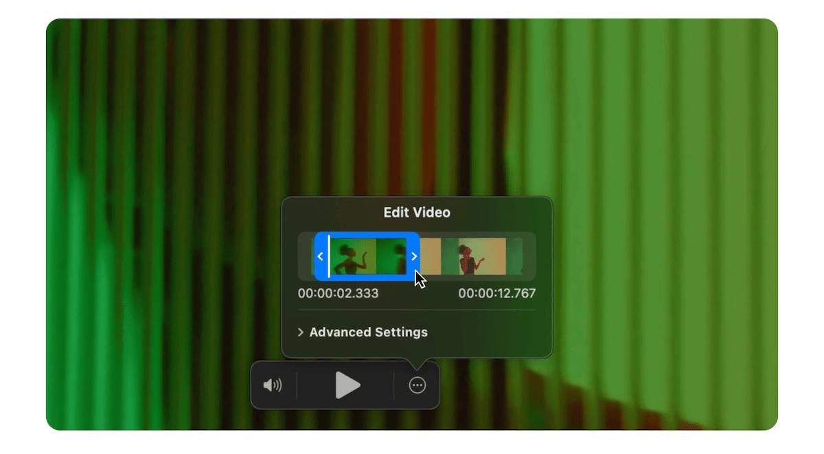 - Videóvezérlőkhasználható videók lejátszására és szüneteltetésére, a videó időtartamának módosítására, poszterkeret kiválasztására, hang elnémítására stb. A több rétegű összetett videókhoz speciális beállításokat adnak hozzá a lejátszási késleltetéshez, valamint annak kiválasztásához, hogy a videó első és utolsó képkockája hogyan viselkedjen.