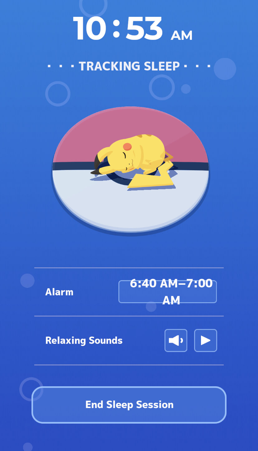 Alvás közben a Pokemon Sleep az Ön hangjai és mozdulatai alapján meghatározza, hogy Ön milyen alvási szakaszban van, és mennyi ideig aludt. Az összes nyomon követett adatot látni fogja, amikor felébred, és befejezi az alvási folyamatot.