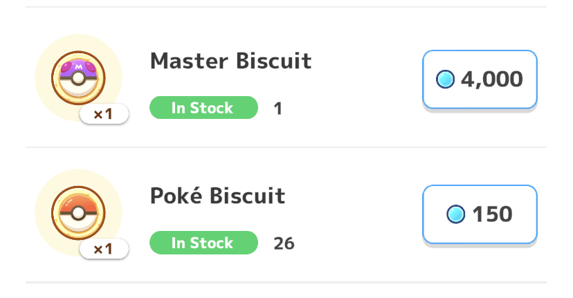 Néhány különféle keksz áll rendelkezésre a Pokemonok etetésére, és mindegyik további összeggel növelheti a barátság szintjét.