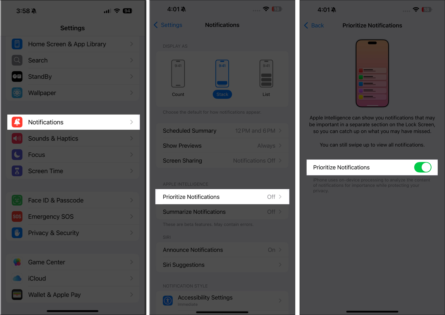Szerencsére az Apple az iOS 18.4 operációs rendszerrel bevezette a Priority Notifications funkciót, az Apple Intelligence funkcióját, amely biztosítja, hogy soha ne maradjon le a fontos figyelmeztetésekről, miközben csökkenti az értesítési túlterhelést. Olvasson tovább, ha többet szeretne megtudni az elsőbbségi értesítésekről, beleértve azt is, hogyan állíthatja be őket iPhone-ján.