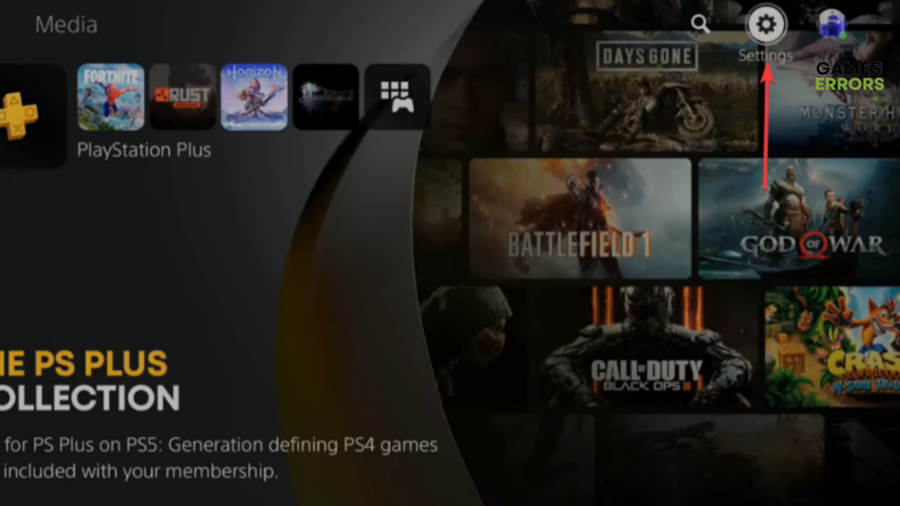 - Keresse meg a PS5 -etBeállításokmenü.