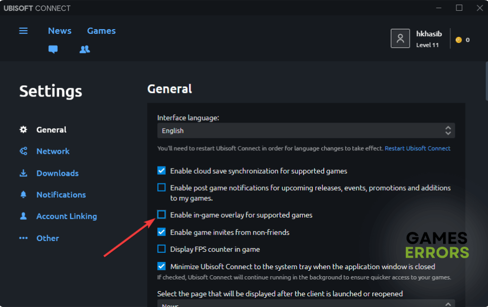 - Menj aÁltalános beállításokaz Ubisoft Connect of Connect, mint korábban.