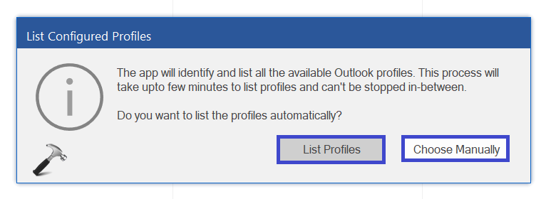 A „Profilok listázása” opció automatikusan átvizsgálja a számítógépet, és felsorolja az összes elérhető Outlook-profilt.