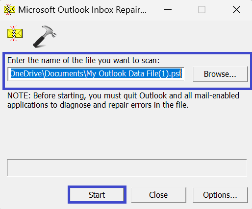 A sérült PST-fájlok kijavításának lépései az Inbox Repair Tool segítségével
