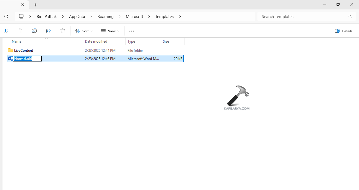 A Microsoft Word sablonjának nevének megváltoztatása szintén elősegítheti az alkalmazás visszaállítását. Ezért kövesse az alábbi lépéseket, hogy ugyanezt tegye.