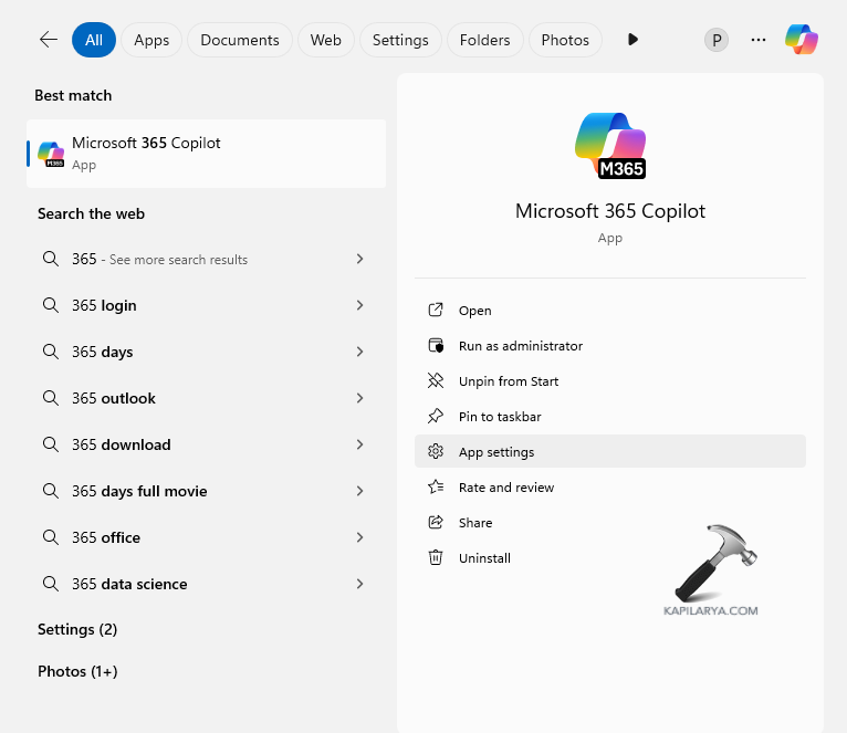 2. lépés-Ezután írjon irodát a keresőmezőbe. Most kattintson a jobb gombbal az Office alkalmazásra, majd kattintson az alkalmazásbeállítások elemre.