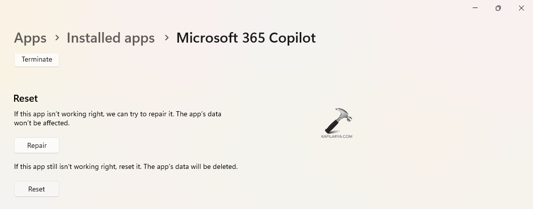 3. lépés-Végül lépjen a Reset szakaszra, és válassza a Reset lehetőséget. Ez újratelepíti a Microsoft Office -t, és visszaállítja az alapértelmezett beállításokra.