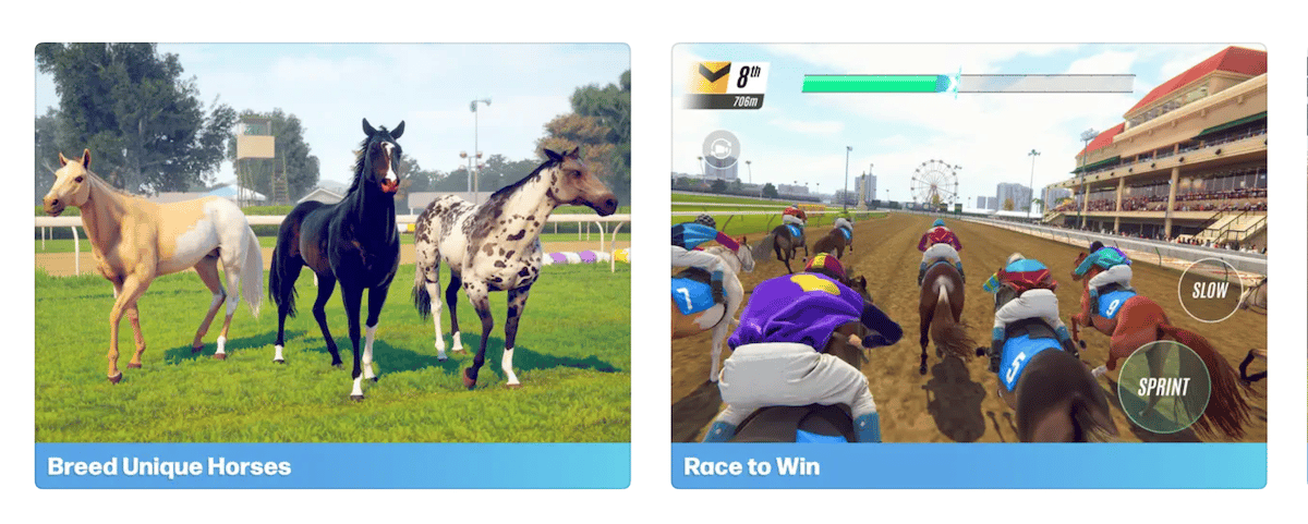A rivális Star Horse Racing alkalmazás hozza a lóverseny világát a mobil eszközökbe. A játékosok vállalhatják a zsoké szerepét, hogy olyan képességeket építsenek ki, amelyek túlmutatnak a versenypályán, beleértve a sebességet, a szellemet és az energiát, és javíthatják teljesítményüket. És a játékosok tenyésztővé válhatnak, hogy kiváló lovakat állítsanak elő a győzelem érdekében.