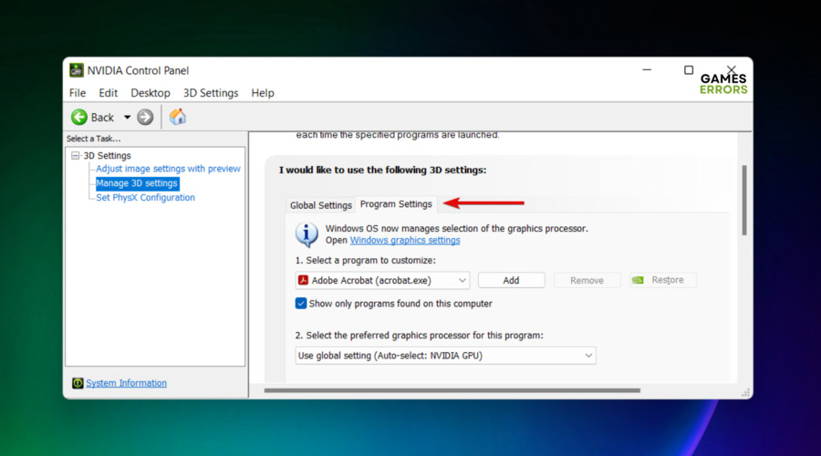 • Egyéb futó alkalmazásS: Más alkalmazások futtatása egy játék közben konfliktusokat okozhat, és zavarhatja a játék teljesítményét. Zárja be a felesleges programokat, és tiltsa le az esetlegesen futó háttérfolyamatokat.