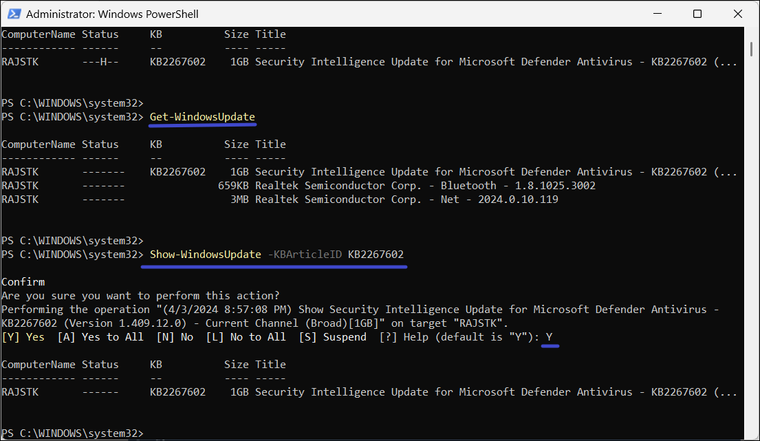 Show-WindowsUpdate -Title "UPDATE-TITLE"