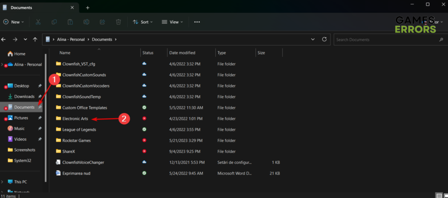 - A bal oldali ablak ablaktáblából válassza kiDokumentumok, majd nyissa meg az elektronikus művészeteket a jobb oldalról.