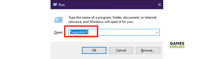 - Nyomja meg a Win + R gombot, és írja be%App Data%A Run alkalmazásban nyomja meg az OK gombot.