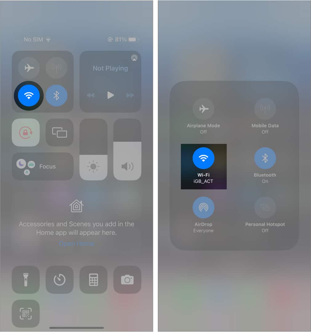 Először ellenőrizze, hogy van -e stabil internetkapcsolata. Ehhez egyszerűen nyissa megVezérlő központ →Koppintson és tartsa beHálózati váltás →Válassza ki semMobil adatok vagy Wi-Fi.
