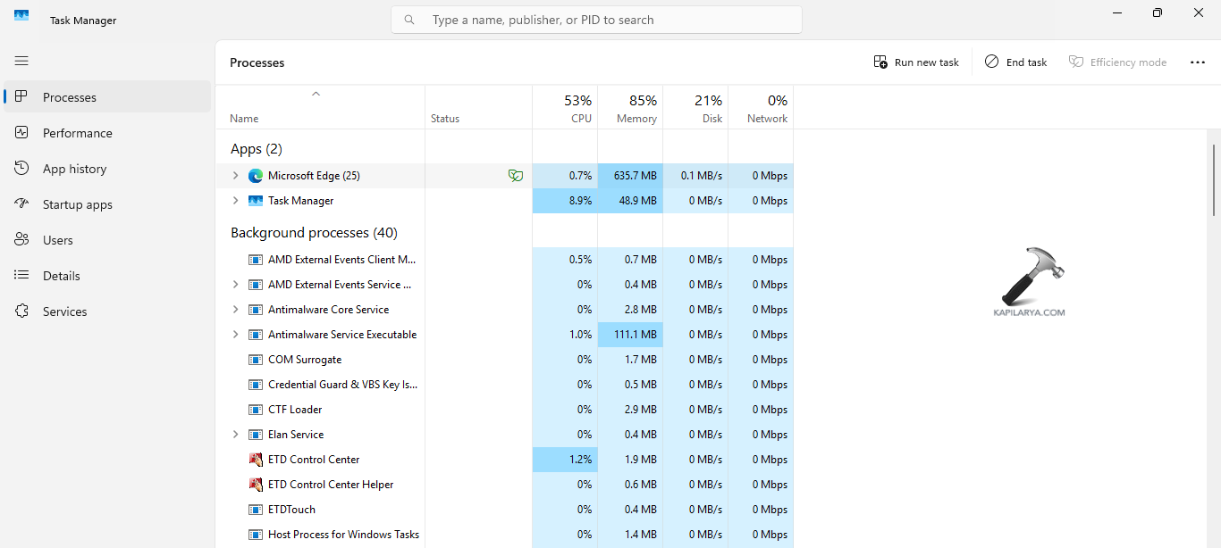 Végül, ha a PC túlmelegedésen megy keresztül, akkor az előző figyelmeztetés nélkül automatikusan leállhat. Annak ellenőrzéséhez, hogy a PC túlmeleged -e, lépjen a Task Manager elemre, és ellenőrizze, hogy valamelyik folyamatban lévő alkalmazás túl sokat vesz -e be a CPU -t. Ennélfogva, ha ilyen alkalmazást talál, fejezze be a feladatot.