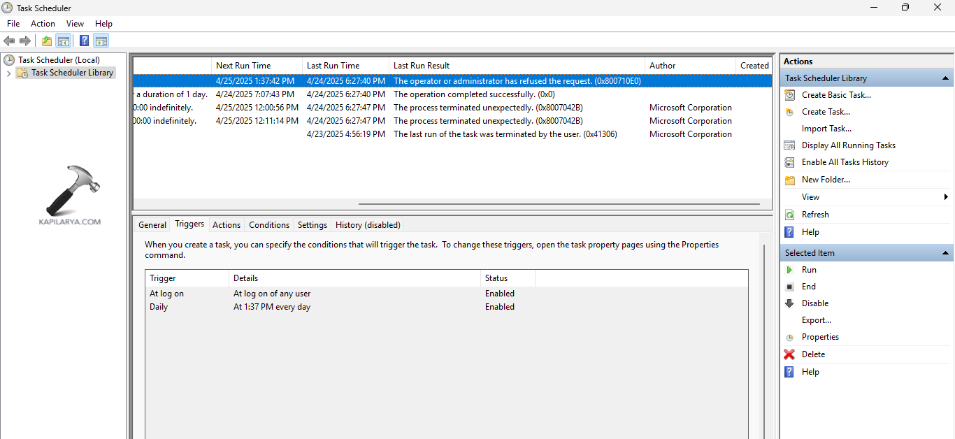 2. lépés:Ezután ellenőrizze az esetleg létrehozott feladatot, amely az inaktivitás érdekében leállítja a PC -t. Ezután végezze el az ilyen feladatot, ha megtalálja.