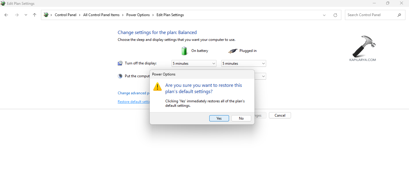 A Windows 11 felhasználói egyszerűen megakadályozhatják a Windows automatikus leállítását azáltal, hogy visszaállítják a vezérlőpulton lévő energiamenciókat. Így ellenőrizzük az alábbi energiavételi lehetőségek visszaállításának lépéseit