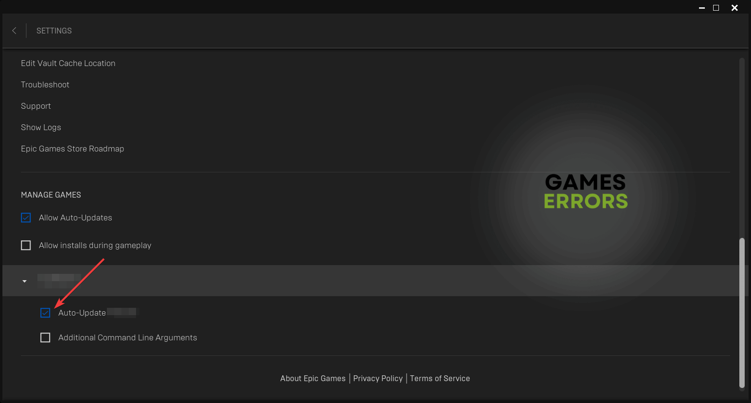 - Görgessen lefelé, amíg meg nem látja aKezelje a játékokatszakasz.