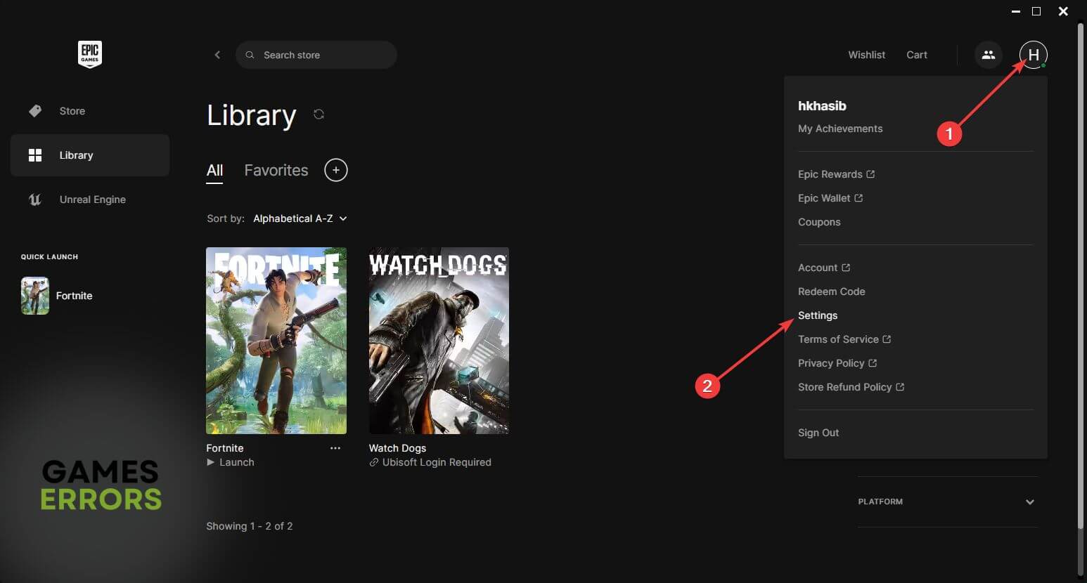 - Nyissa ki aEpic Games Launcher-