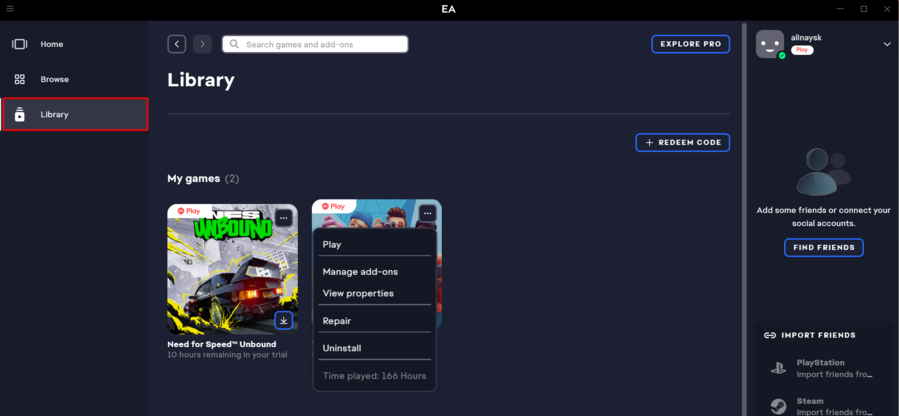 7. NavigálKönyvtárés keresse meg a Sims 4 -et.