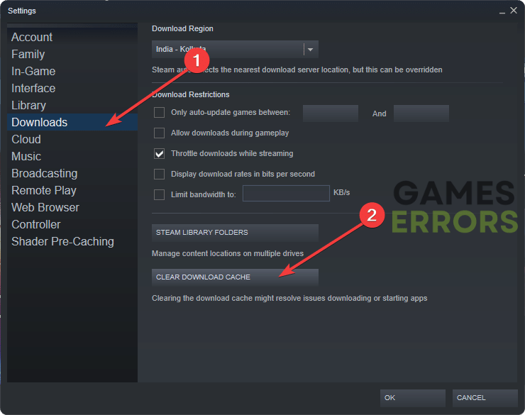 Ha látja, hogy a trónfall nem indít a Windows 11 vagy 10 PC -n, törölje a Steam letöltési gyorsítótárát. Működnie kell.