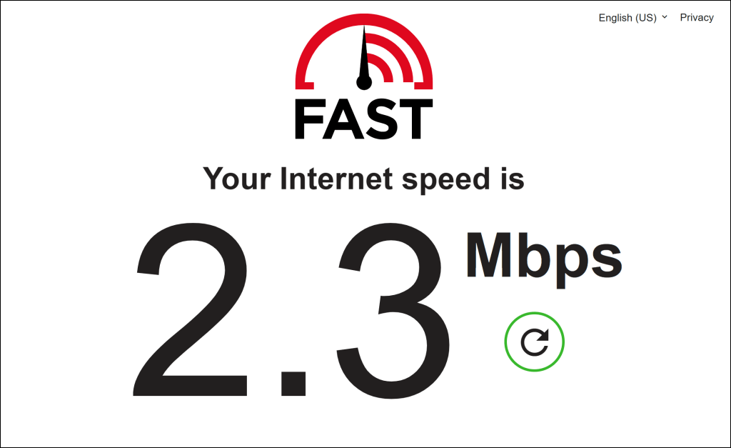 Látogatásfast.com,sebességem, vagyspeedtest.netwebböngészőjében, hogy tesztelje a kapcsolat letöltési sebességét. Futtassa le a sebességtesztet egy olyan eszközön, amely ugyanahhoz a hálózathoz csatlakozik, mint a streaming eszköz.