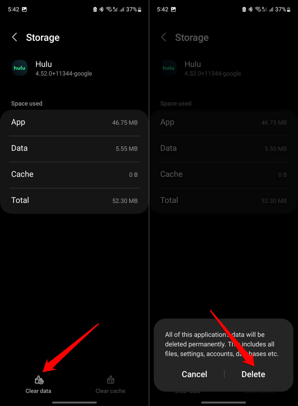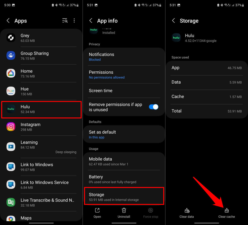 5. Törölje a Hulu gyorsítótárat vagy az alkalmazásadatokat