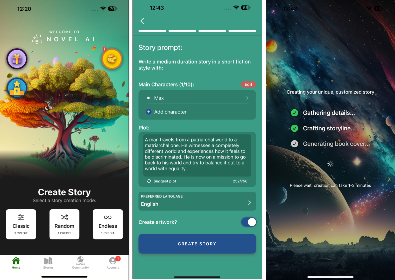 Egész életem álma, hogy regényt írjak, ehhez pedig szükségem van egy eszközre, ahol meg tudom írni és tárolni tudom az írásaimat. A Novel AI alkalmazásban ennél többet kaptam. Az alkalmazás segített létrehozni egy borítóképet regényötletemhez, és még a regényem kezdeti három fejezetét is létrehozta, amikor leírtam a cselekményt.