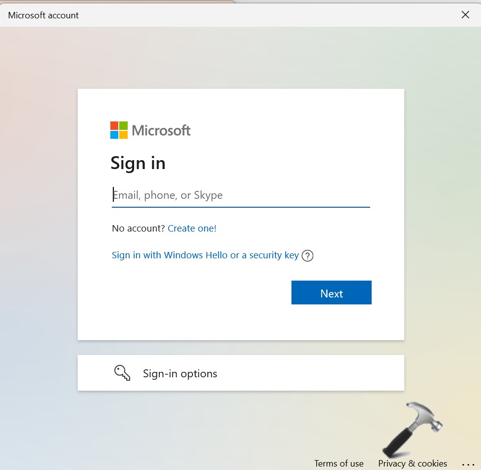 4. Most írja be aemailvalamintjelszóMicrosoft-fiókhoz, és kattintson a gombraKövetkező.