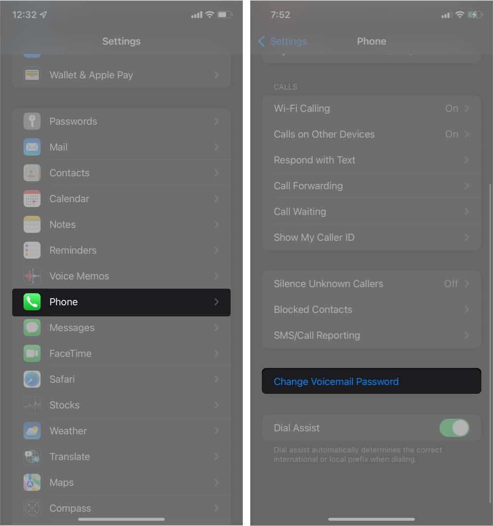 Annak ellenőrzéséhez, hogy a hangposta helyesen van -e beállítva az iPhone -ján, nyissa meg aBeállításokalkalmazás és érintse meg aTelefon- Ha képes megtalálni aVáltoztassa meg a hangposta jelszavátLehetőség alul, akkor a hangposta már be van állítva, és jó vagy.