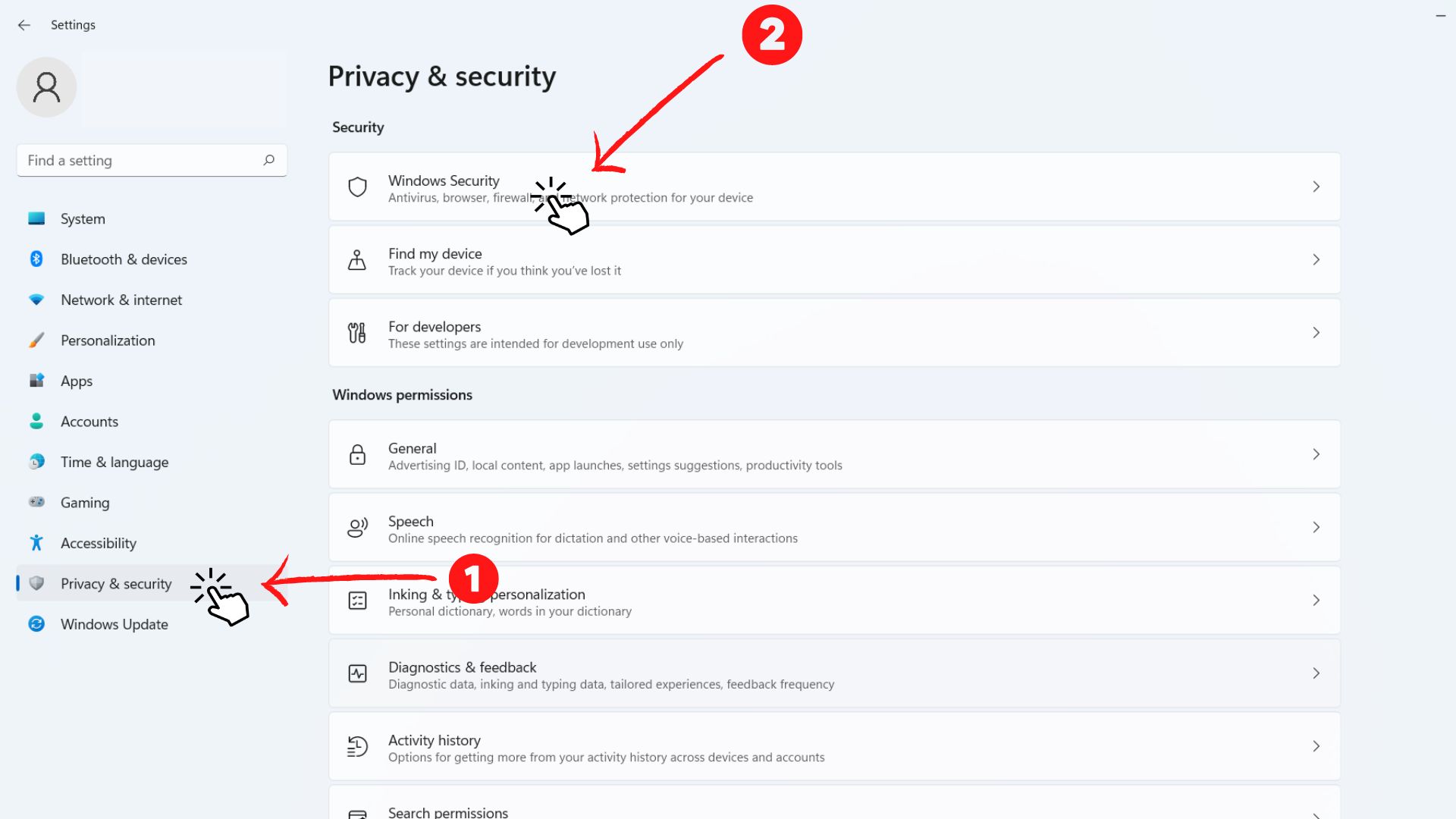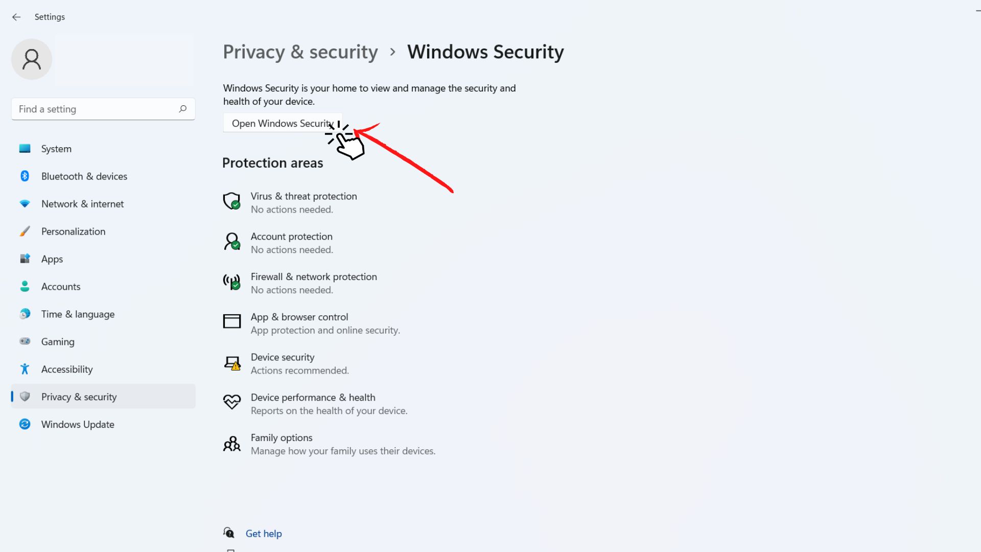 - ElindulAdatvédelem és biztonság, majd kattintsonWindows biztonság