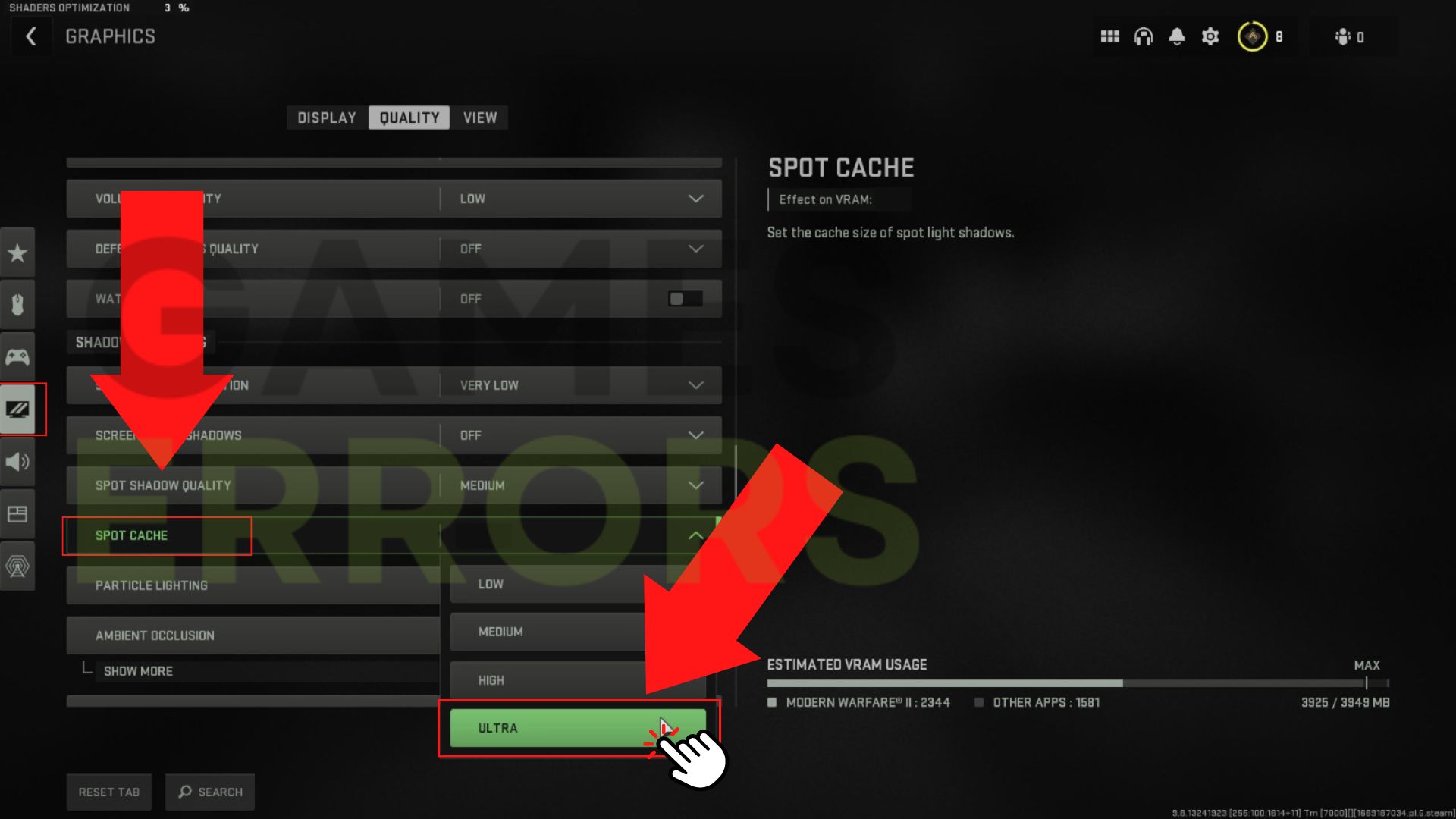 Amikor megpróbálja növelni az FPS -t, csábító lehet, hogy mindent alacsonyra állítson, azonban a Warzone 2 jobban teljesít, ha a Spot Cache magasra vagy ultrare van állítva.