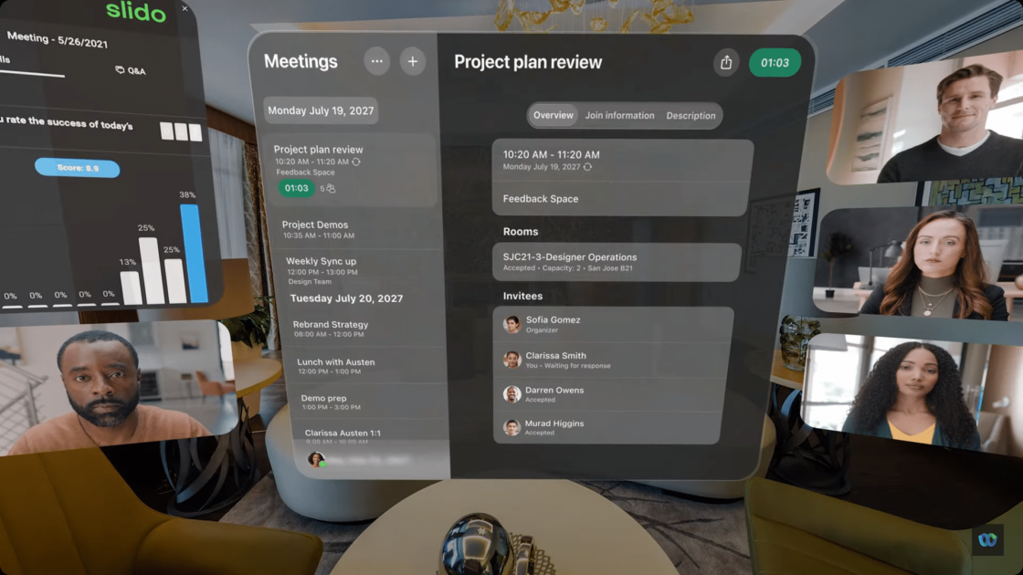 Ez nem csak egy újabb videokonferencia-alkalmazás.Webex az Apple Vision Pro-nújradefiniálja kapcsolataink és együttműködésünk módját. Mintha egy virtuális tárgyalóba lépne be, ahol kollégái életnagyságú avatárjai vesznek körül, mindezt saját fizikai terének kényelmében.