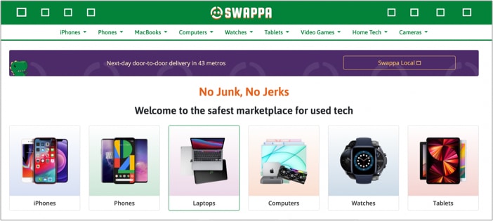 A Swappa egy jól elismert piac a jó árak biztosításához, a közvetítők beavatkozása nélkül. Sőt, az eladóknak nem kell fizetniük díjat; Általában ez a helyzet, amikor eladják a társaságnak, amely tovább adja a vevőknek profitot.