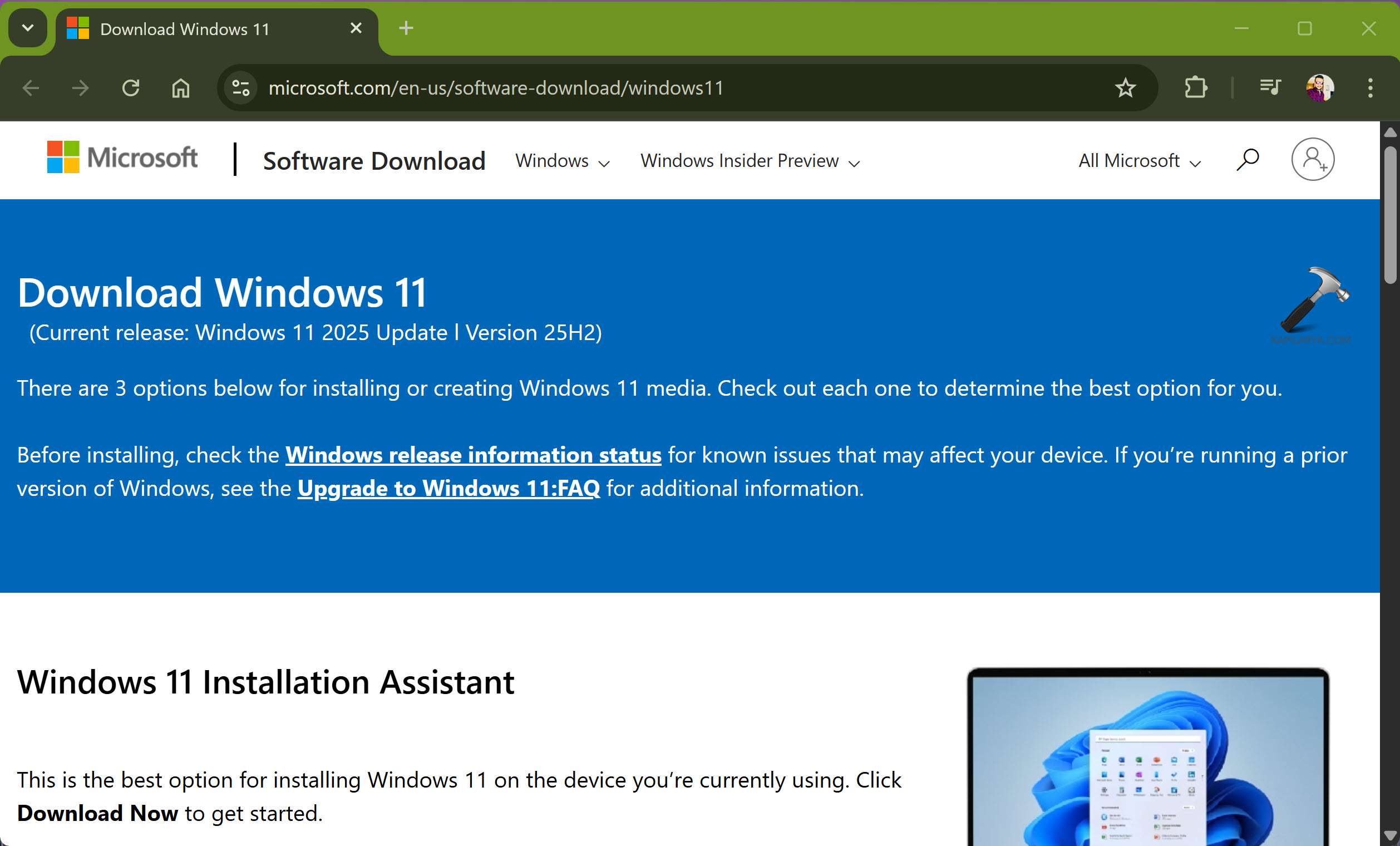 A 25H2 ISO verzió letölthető a Microsoft nyilvános szoftverletöltő webhelyéről. Nyissa meg kedvenc böngészőjét, és lépjen idehttps://www.microsoft.com/en-us/software-download/windows11. Az oldal betöltése után látni fogja, hogy a Jelenlegi kiadás 25H2-es verzióként szerepel.