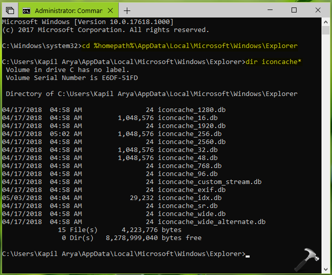 cd %homepath%AppDataLocalMicrosoftWindowsExplorer