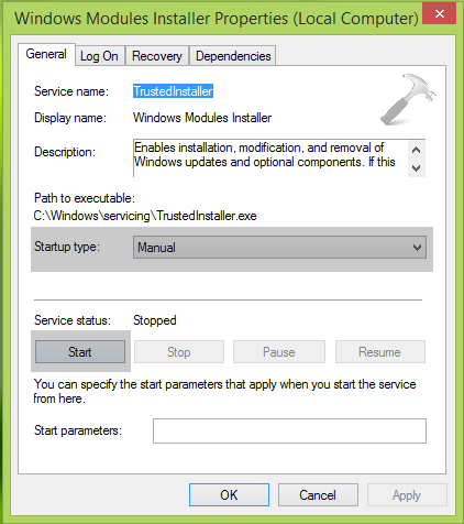 3.Végül az alább látható Tulajdonságok ablakban állítsa az Indítás típusát Kézi értékre. Kattintson isIndulgombbal hagyja futni a szolgáltatást egy ideig. Kattintson az Alkalmaz, majd a gombraRENDBEN. Zárja be a Szolgáltatások beépülő modult.