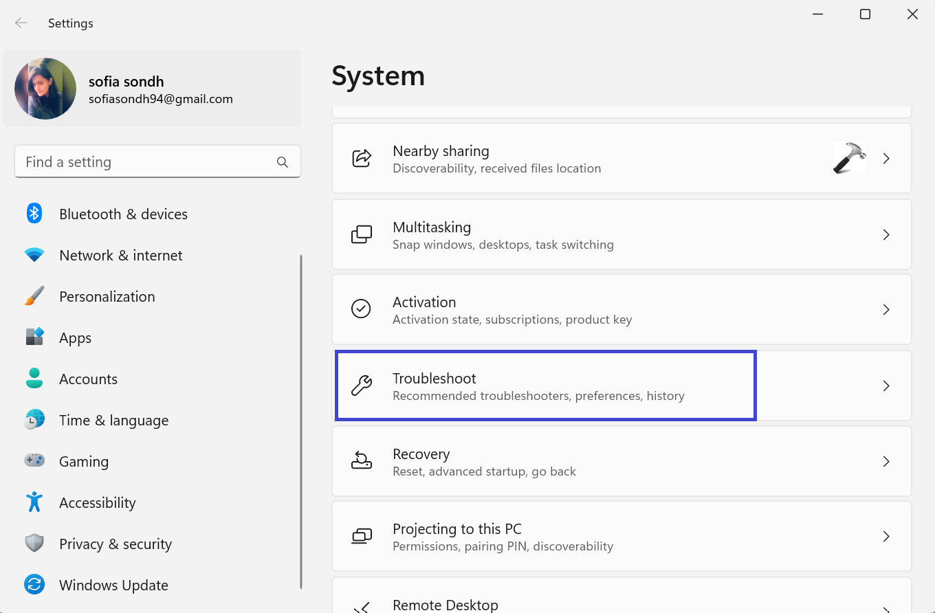 2. Most válassza a Hibaelhárítás lehetőséget a jobb oldali panelen.