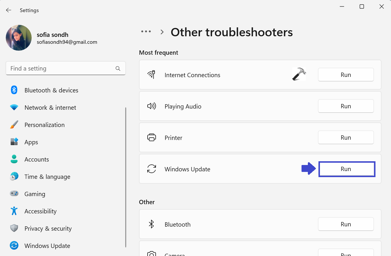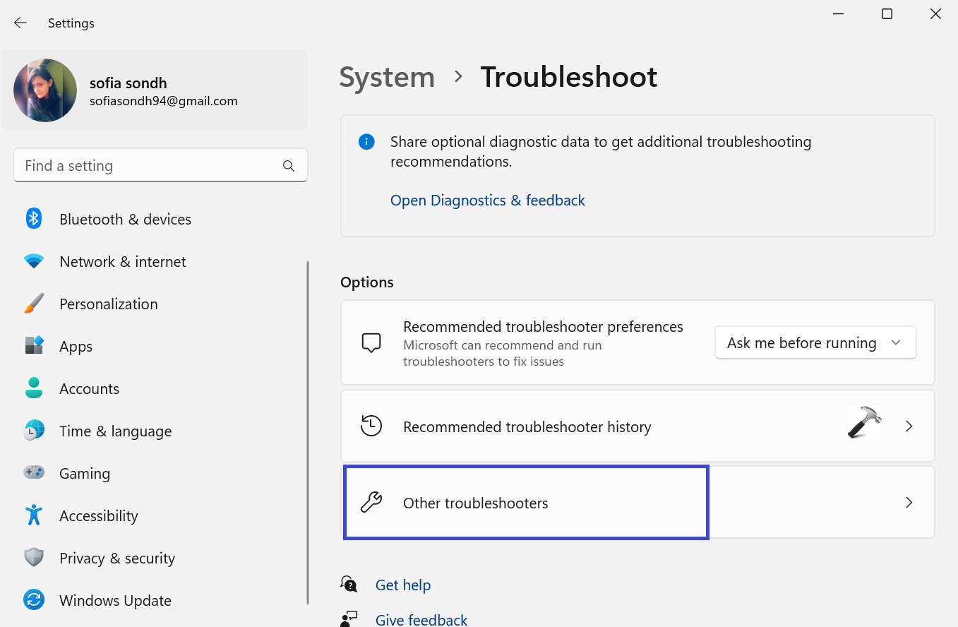 3. Kattintson az „Egyéb hibaelhárítók” lehetőségre.