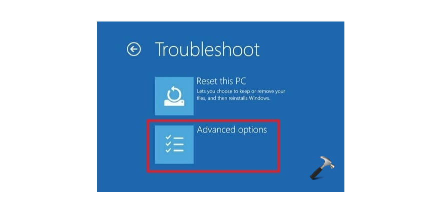 6. Válassza a Hibaelhárítás lehetőséget, majd kattintson a Speciális beállítások elemre.
