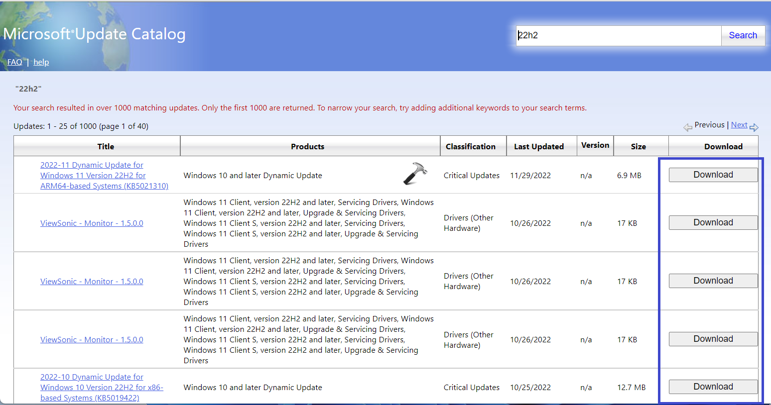 3. Írja be a Frissítés kódszámát a keresősávba, és megjelenik a lista.