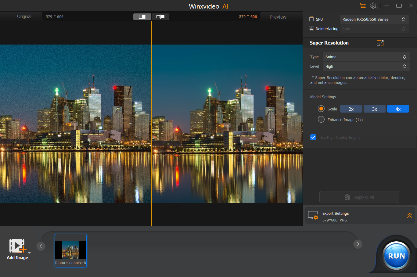 - Felbontás javítása (akár 4x -ig): Mondjon búcsút a homályos képekről! A WinxVideo AI AI technológiája jelentősen javíthatja felbontását, finomabb részleteket hozva és helyreállítva az egyértelműséget.