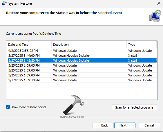 3. lépés-Most, a visszaállítási pontoktól kezdve válassza ki a kívánt személyt a PC visszaállításához, és nyomja meg a következő gombot.