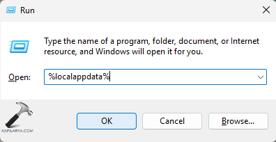 1. lépés-Először írja be a Windows + R -t, és nyissa meg a Run párbeszédpanelt. Ezután másolja és illessze be az alább megadott környezeti változót, és nyomja meg az Enter gombot.