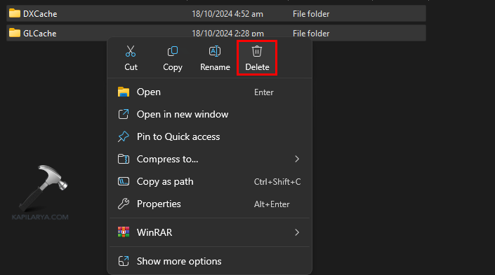 3. lépés-Ezután nyissa meg a Glcache mappáit, és a DXCACHE törölje az összes fájlt mindkét mappából.