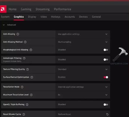 2. lépés-Ezután látogasson el a Graphics> Speciális> Reset Shader Cache elemre.