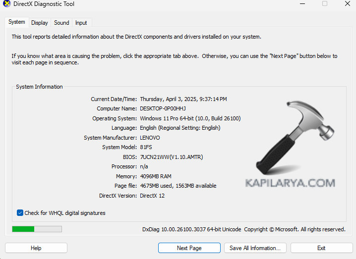 3. lépés-Ezután ellenőrizze, hogy a DirectX frissül -e. Ha azonban elavult verzió, töltse le a frissített verziót.