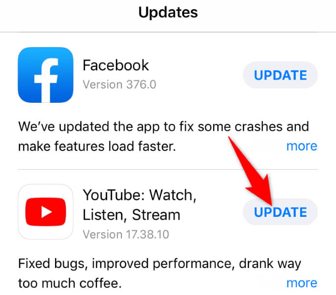 A YouTube gyakran különféle alkalmazásfrissítéseket kap, lehetővé téve a hibák kijavítását és új funkciók megszerzését. Lehet, hogy az összeomlási problémája a telefonján elavult YouTube alkalmazás verziója miatt fordult elő. Ezt megoldhatja az alkalmazás frissítésével a legújabb verzióra.